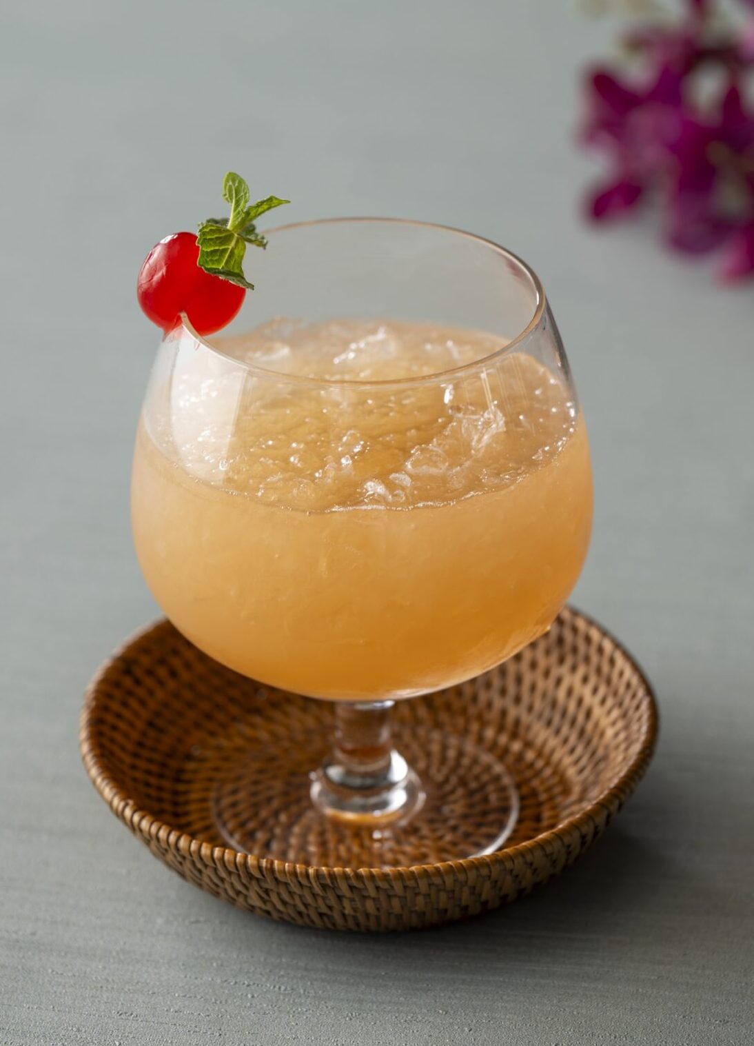 ライチとパッションフルーツを使用した春風に乗って花が舞うような、軽やかで香り豊かなアジアンカクテルです。