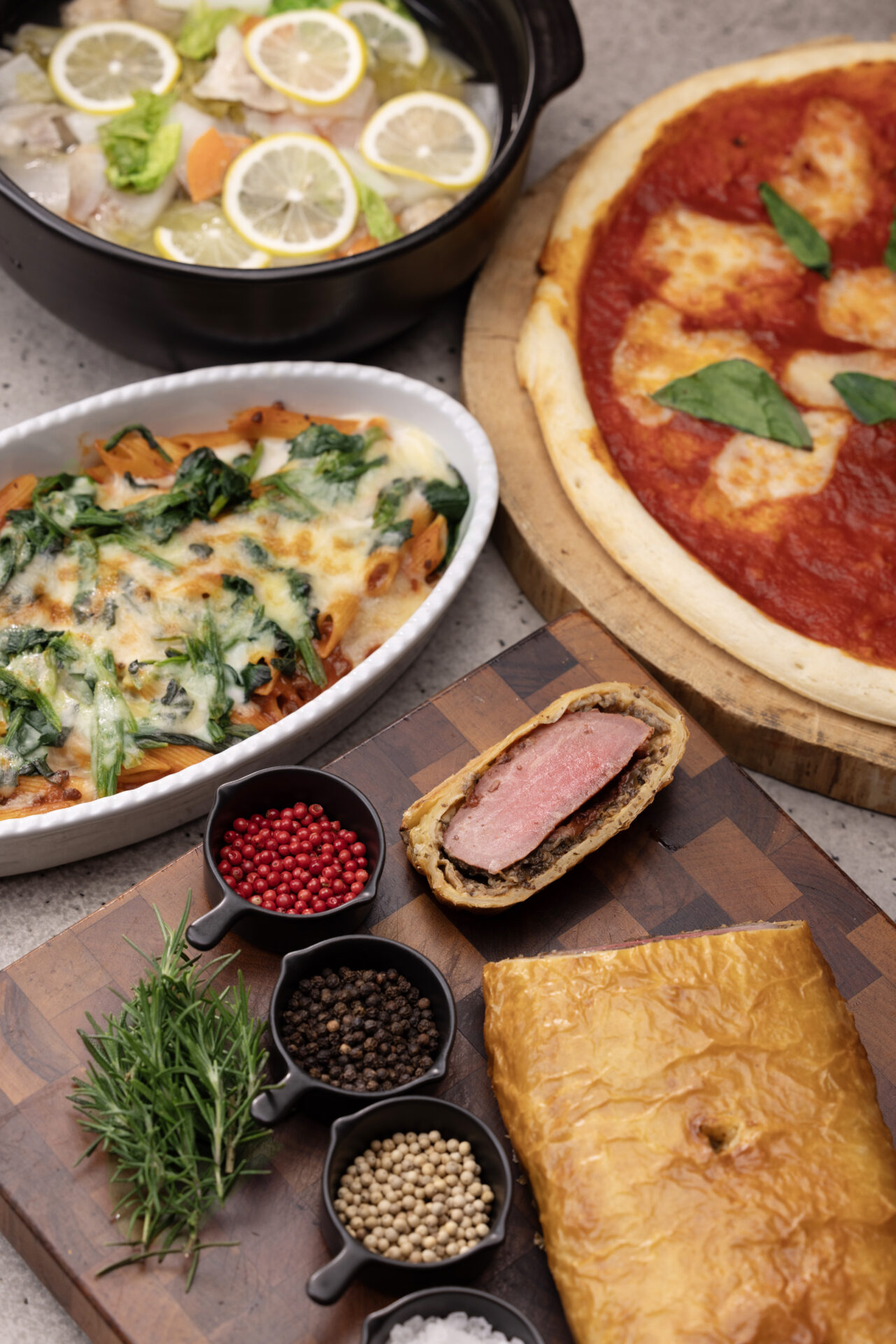 クラムチャウダー ガーリックのクルトン/蒸し野菜のココット 2種のソース/挽肉と法蓮草のペンネグラタン/ビーフシチュー/広島レモン鍋/鱈のカダイフ焼き/魚介と野菜のフリッター/広島肉じゃがカレー/水菜とツナのペペロンチーノ/ミラノ風マルゲリータ など